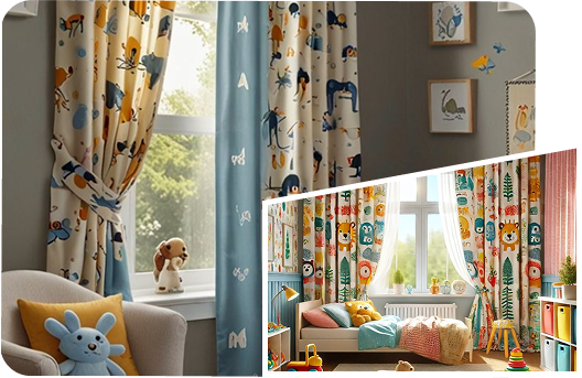We provide curtains with lively themes, cartoon characters, cars, and many more designs that are popular among both boys and girls.